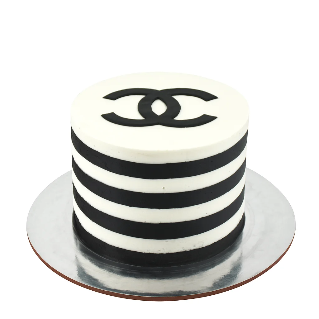 Simple, stylish and unmistakably chic. This black and white striped buttercream cake is finished with a bold cut-out Chanel logo on top, perfect for fashion lovers and elegant celebrations. Whether it’s a birthday, celebration or luxe event, this design brings a touch of designer flair to the table.